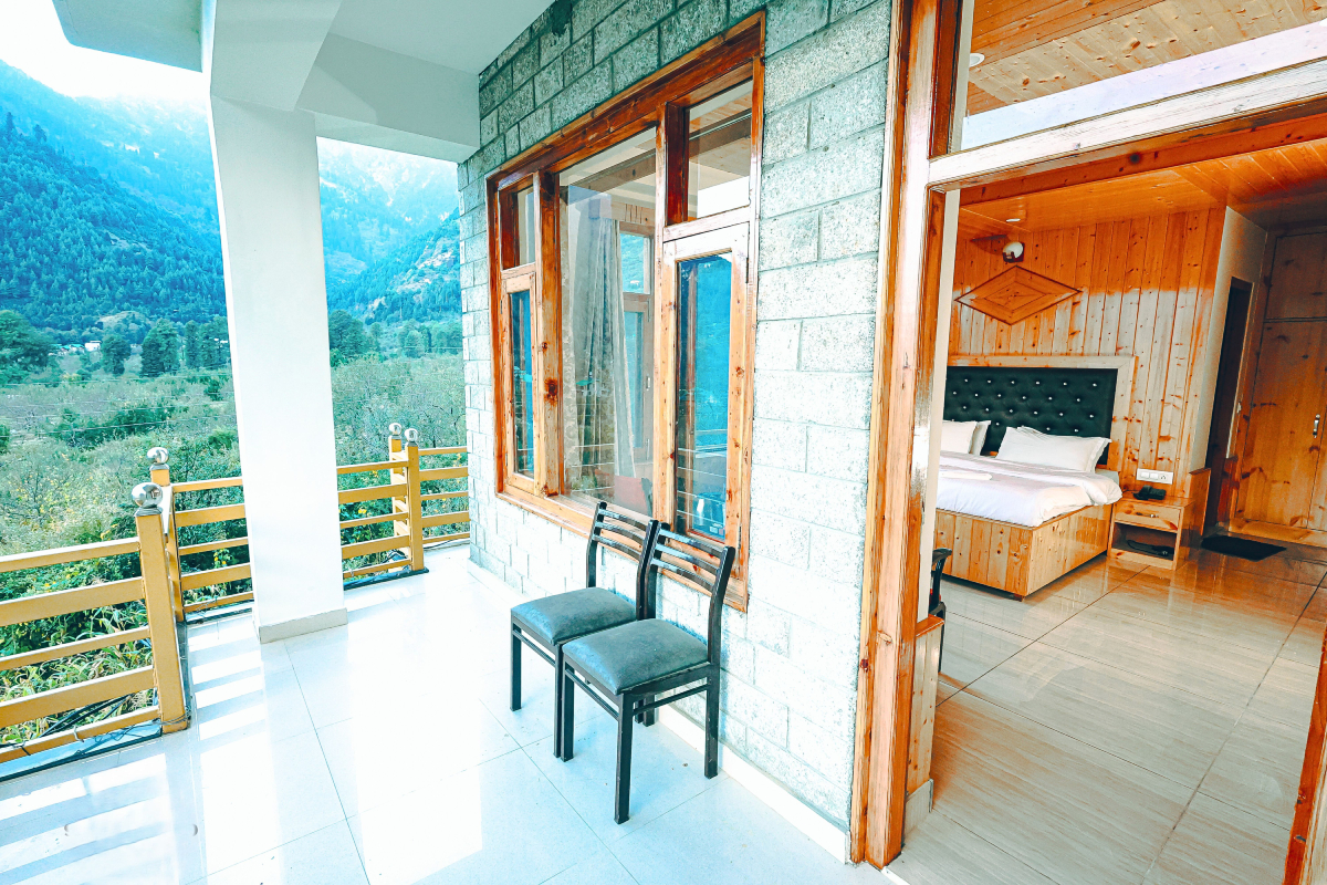 The Elite Retreat rooms feature specious balconies with panoramic views, offering a perfect complement to the large windows. Designed to strike a balance between modern elegance and cozy ambiance, each room boasts premium furnishings, plush bedding, and a range of thoughtful amenities. The balconies and large windows open up to breathtaking vistas of the majestic Himalayas and the surrounding natural beauty, allowing guests to fully immerse themselves in the tranquility of Manali.